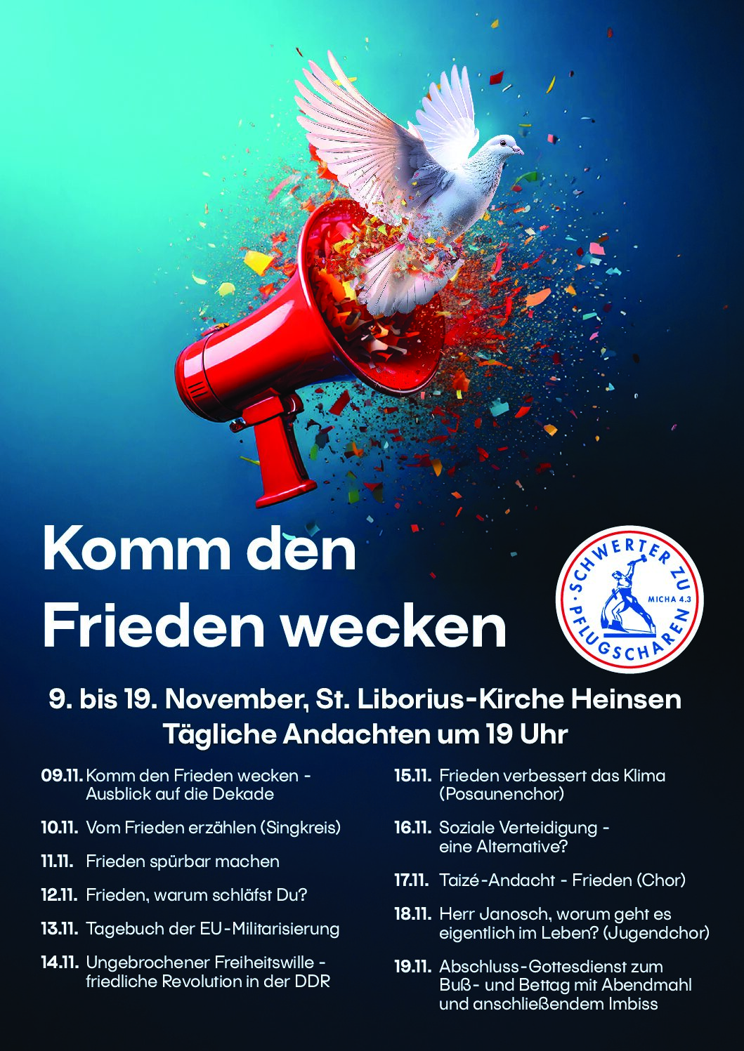 Friedensdekade – Abschluss-Gottesdienst zum Buß- und Bettag mit Abendmahl und anschließendem Imbiss.