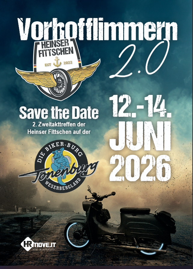 Vom 12. bis 14. Juni 2026 lädt der Heinser Fittschen e.V. zum Vorhofflimmern 2026 ein. Das überregional bekannte 2-Takt-Treffen findet in diesem Jahr erstmals in einer ganz besonderen Location statt: auf der historischen Tonenburg bei Höxter.